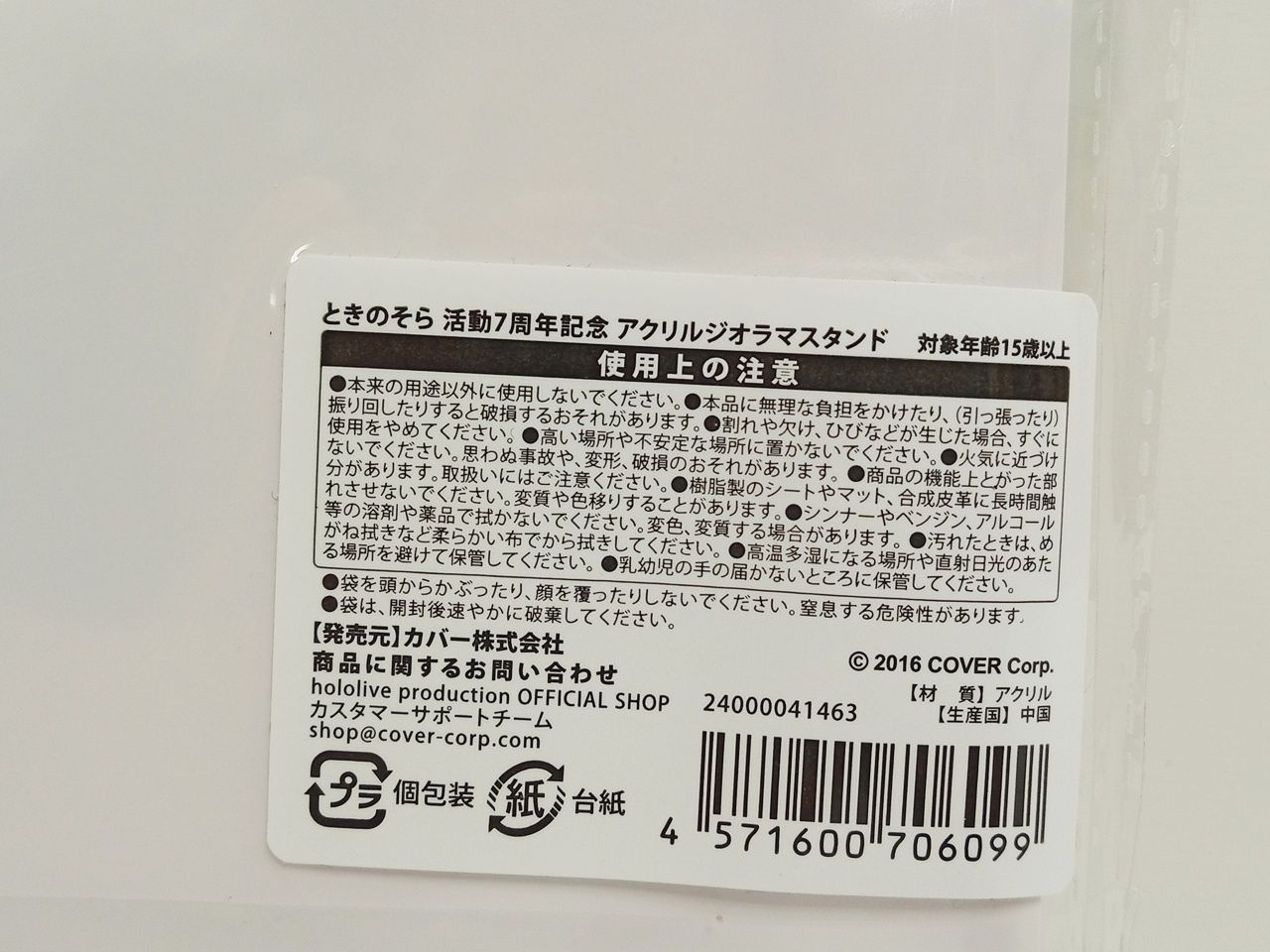 ときのそらぬいぐるみの袋は開封済みですが、本体に目立った汚れ等はございません。